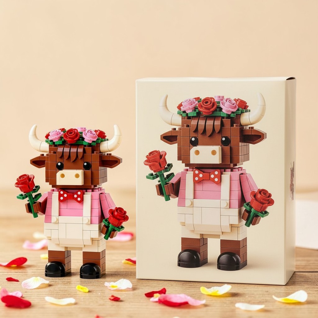 Inspired by this, we created a building block set of a Highland cow wearing a rose crown and holding bouquets, a sweet tribute to a mother’s everlasting love.